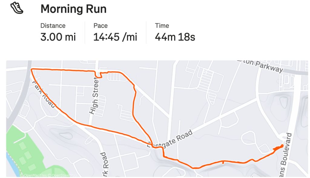 Then on Friday I ran 4 miles instead of yesterday’s planned 5 miles, due to work and other appointments.