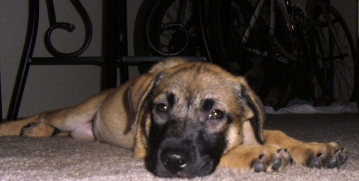 I told them I would come back after work to pick her up. And she was FREE. I went back to work, took a half day, and went to get her. It was total chaos for a year. Chewed sofas, ruined carpet, aching back as she pulled me on every walk. Winnie and Daisy.