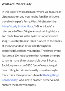 The race even got a mentioned in Ultra Running What’s Up This Weekend