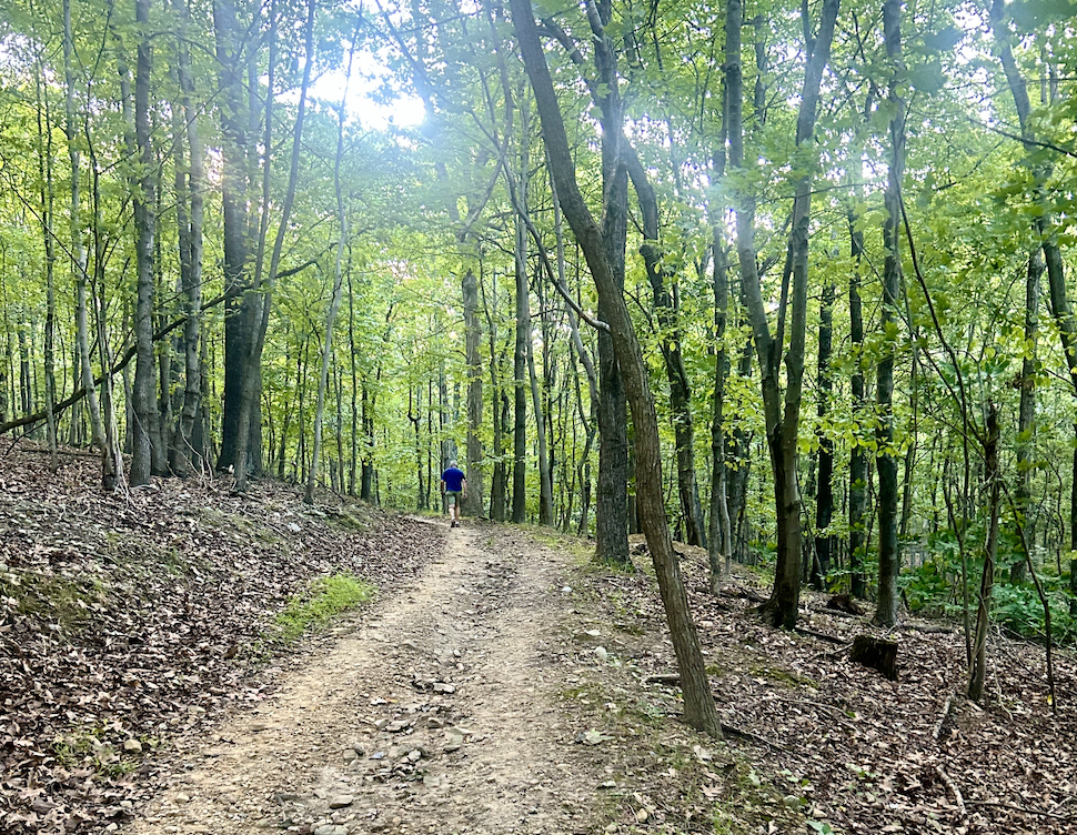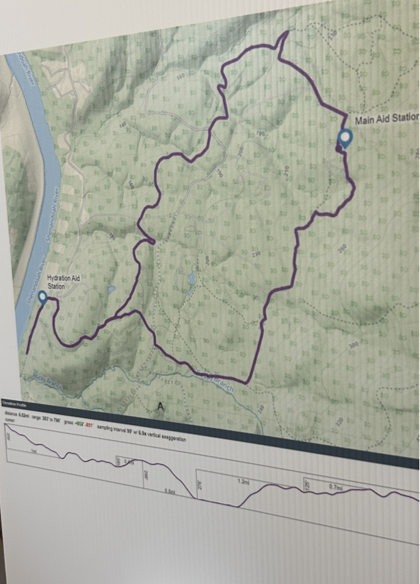 While I studied the map, I had never been on the course and just followed the group. The course began with a gentle downhill and rolling hills. The course is wooded and beautiful, and as the daylight appeared, I felt like something bit me behind my knee and started rubbing it. A few minutes later I learned that runners were being stung and attacked by hornets.