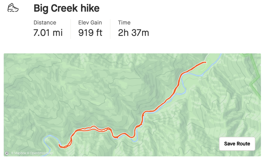 The trail was a perfect option the day after a big trail run. It was a gradual ascent and felt like a leisurely hike up the creek; despite Strava saying it was a 919 foot descent for 3.5 miles